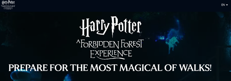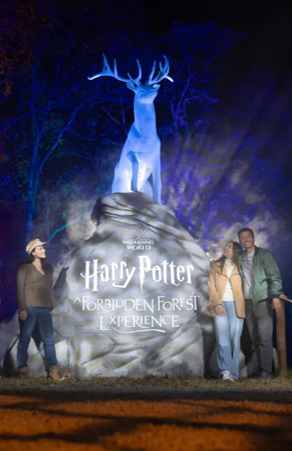 Far beyond a static display of movie props, this traveling exhibit uses dramatic set design, interactive tech and even scent to transport fans into iconic scenes. A nighttime woodland trail filled with magical creatures and wizarding wonders from the Harry Potter™ and Fantastic Beasts™ films. Set in beautiful woodland, this experience has been brought to life by award-winning theatrical designers and experiential creators. Upon entry, each guest “enrolls at Hogwarts” by choosing a Hogwarts house and Patronus (spirit animal) and receiving an RFID wristband.